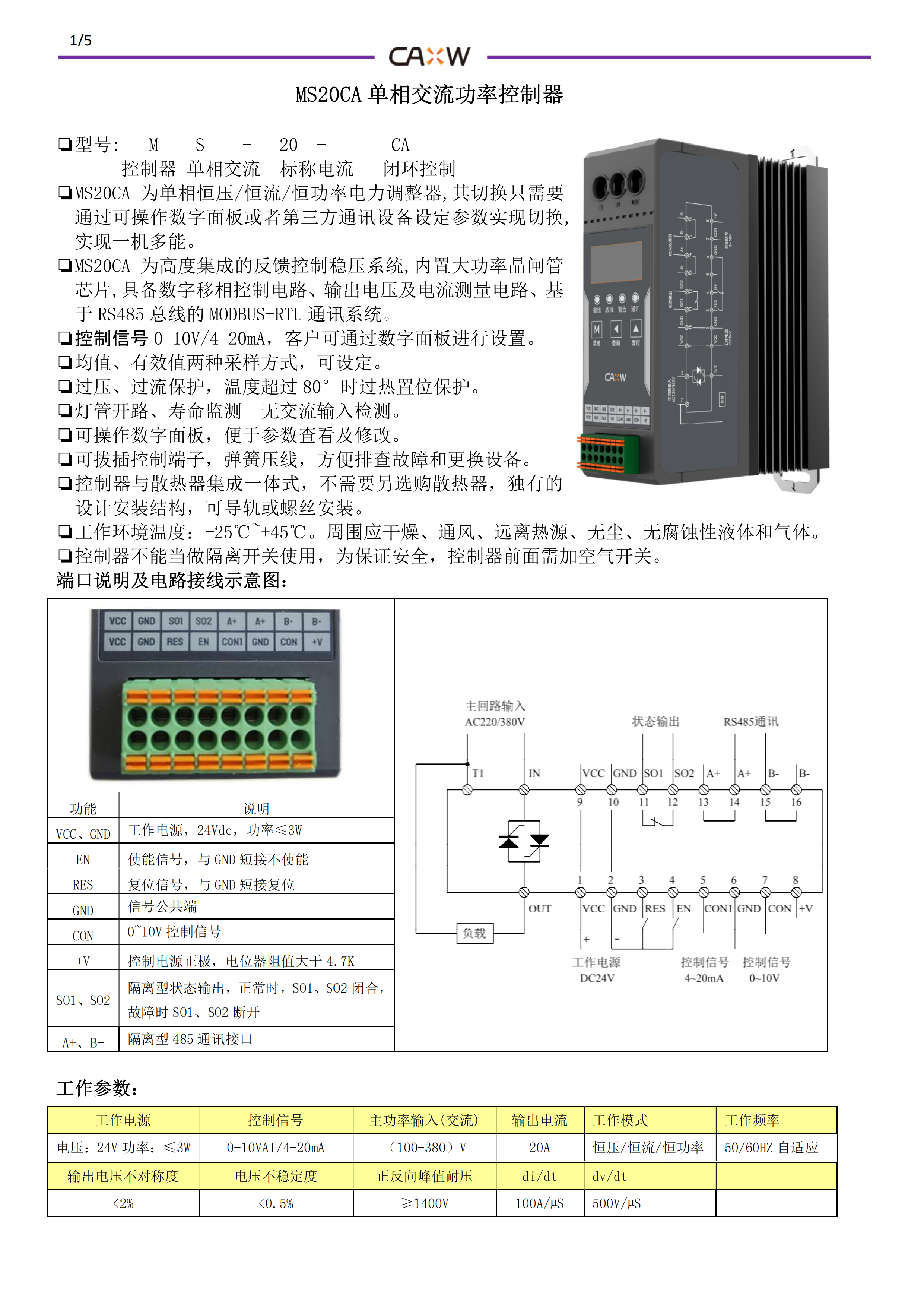 單相交流功率控制器MS20CA