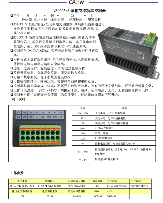 單相交流功率控制器MS40CA-S